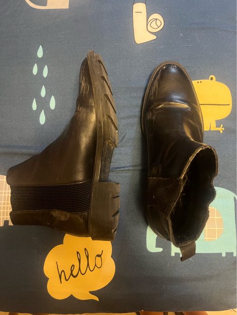 敘述:ZARA 平底踝靴,尺寸38,六成新,有磨損痕跡。微尖頭,腳寬慎入。