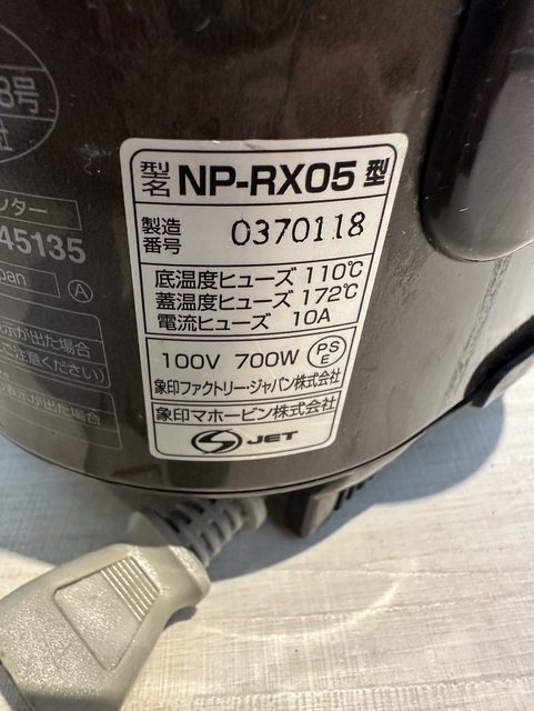 交易地點:南屯捷運站附近 廠牌/型號 象印 ZOJIRUSI NP-RX05 來源: 親友日本購入,購入時間忘了,少用,倉庫斷捨離,最近有拿出來可以正常使用 交易金額:$1000