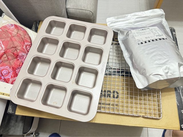 物品名稱:烘焙用紅茶粉1公斤2024/11到期、隔熱手套、奶油抹刀、晾架、蛋糕便當盒、