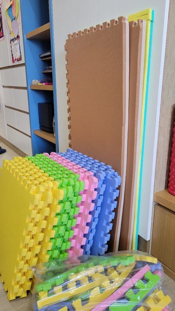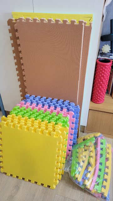 物品說明:使用過的地墊,45?45cm巧拼共18片,另有切割過約45?100cm的地墊3片,可分