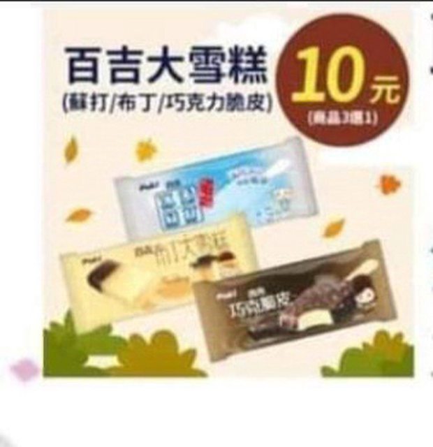 標題[徵求] 全家取貨3選1百吉大雪糕優惠券
