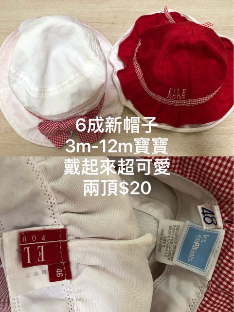 8.兩頂3m-12m女寶帽子 $20