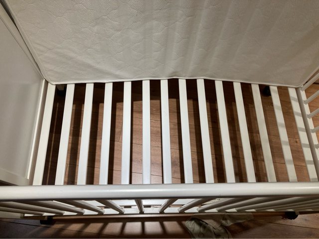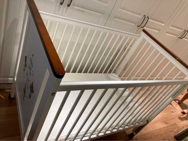 五年前購買,目前有兩處有孩子咬痕(如圖),其餘都保存蠻好。會附床墊,但基於衛生