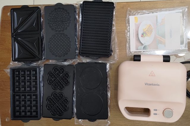 交易物品:Vitantonio【VWH-50B-PB】裸粉橘多功能計時鬆餅機,包含六組烤盤