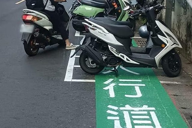 淨寬不足釀禍 機車停上綠色人行道