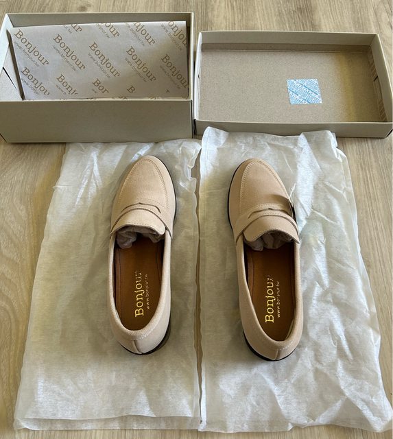 全新 BONJOUR真皮樂福鞋-米杏38