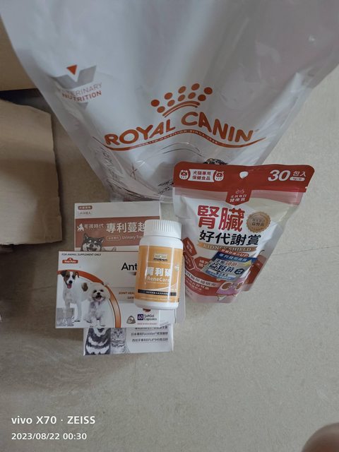 有一些腎犬相關的保健食品跟飼料贈送,有皇家腎犬配方2kg一包,
