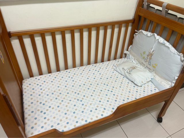 on&gclid=Cj0KCQjw84anBhCtARIsAISI-xd8JgFDCof13iTtbVM2ANF7u2uhIRhfP_WHNZdapgndT EeogpjmXC4aAqnSEALw_wcB&gclsrc=aw.ds 4.比得兔實木嬰兒床大床$2800 高 標 勿 入~ 含床墊、床包、床圍、枕頭 贈送尿布袋 現在是調整成成長型嬰兒床使用,還有原始的升降圍欄如圖所示 全部可拆 需自己來載