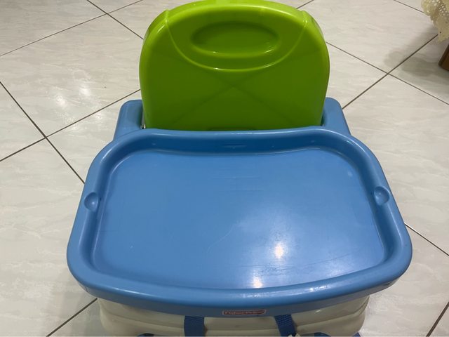 台南北區小北夜市附近面交 1.(售出)二手費雪餐椅 一台100元 綠色的蓋子和餐盤都沒用到已經丟了