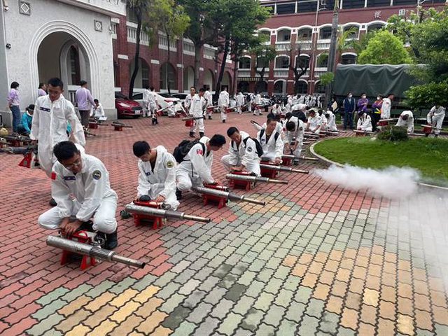 台南市登革熱疫情嚴峻,颱風來臨前仍持續加強噴藥。