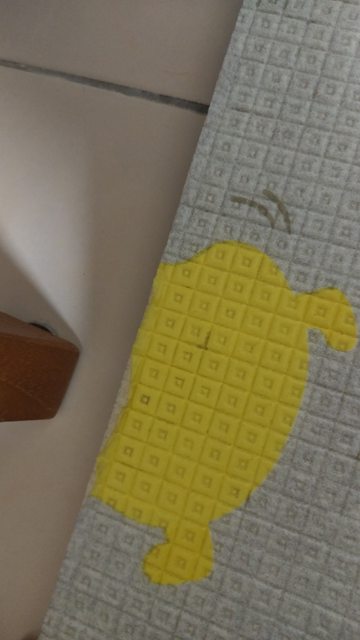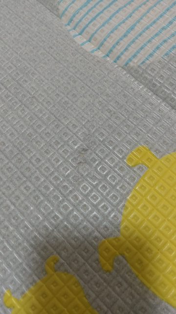 地墊有3處折痕,邊緣約有5處凹陷,中間約有一處凹陷。