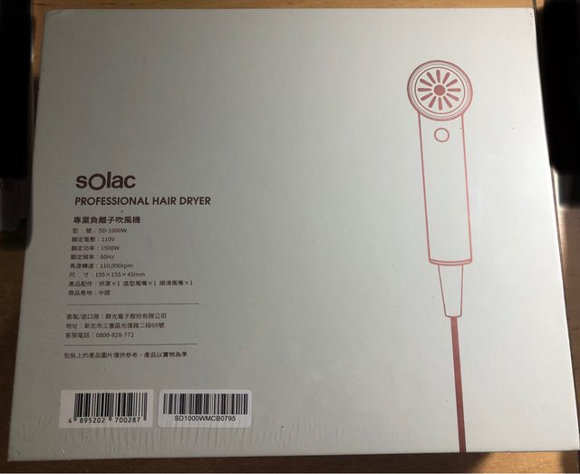 贈送sOlac吹風機 SD-1000W,抽獎抽到用不多贈送給有緣人,全新未拆封。