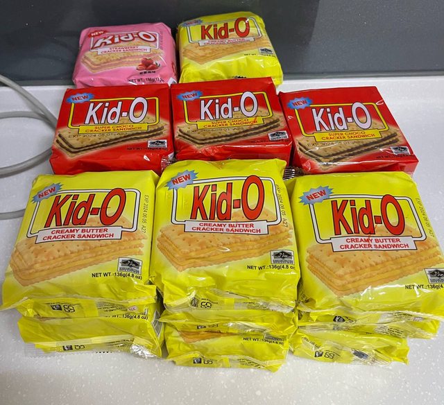 售Kid-o日清三明治餅乾,口味8包奶油、4包巧克力、1包草莓,單包30元,全帶走300元