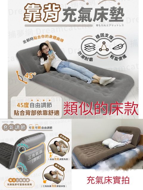 說明:使用約兩個月,充氣很快,也不容易消氣,當日常床墊也很適合。三角靠墊可分開充