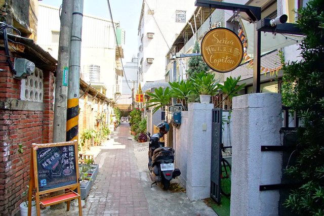 船長先生餐酒館隱身在體育路旁的小巷中,巷子口就是體育公園杏仁豆腐冰,另一頭則是