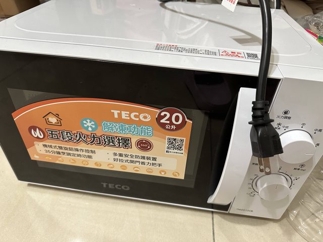 1. 售 全新東元20L微波爐,未使用過(僅拆除接地頭),售$1800,今年8月底剛購入,還留有保固貼紙跟箱子。