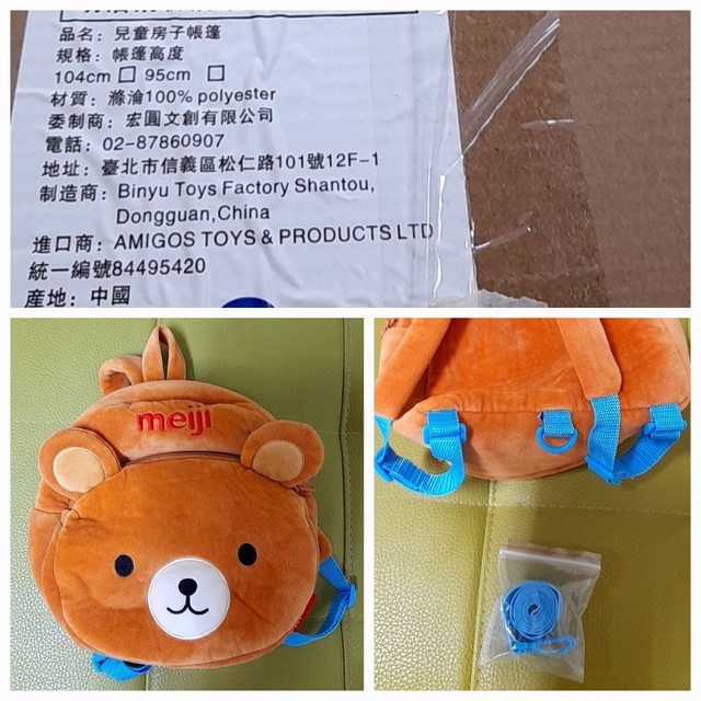 *購買奶粉另贈九成新小熊背包(附牽繩、已洗淨)、明治簡易兒童帳篷(有拆開來試用