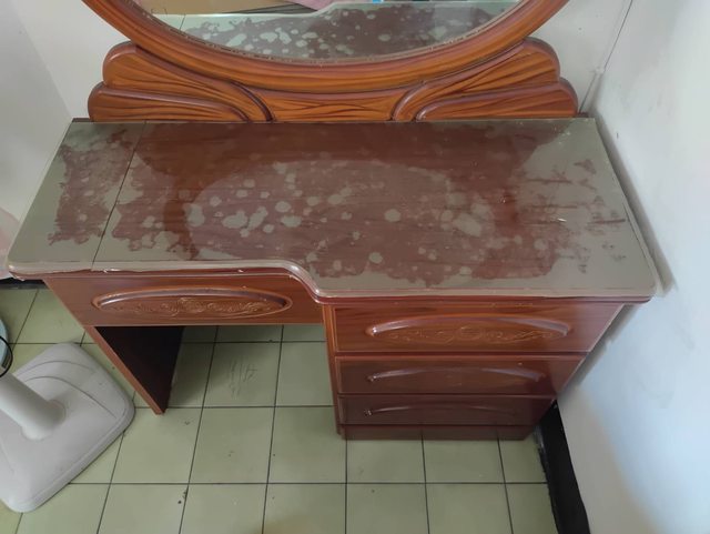 標題售舊式衣櫃桌子等傢俱、電扇、碗盤架