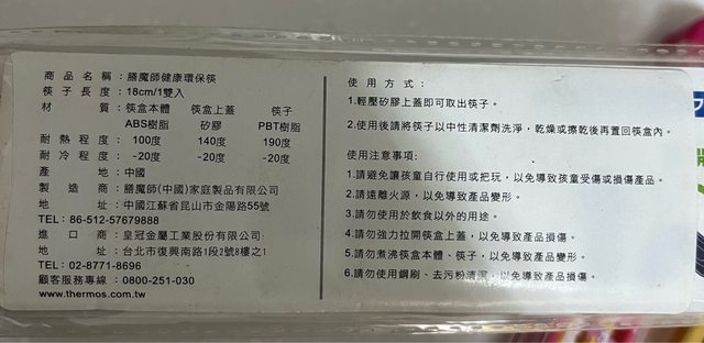 2. 膳魔師環保筷18cm/30元/再送右手邊含筷架、筷盒