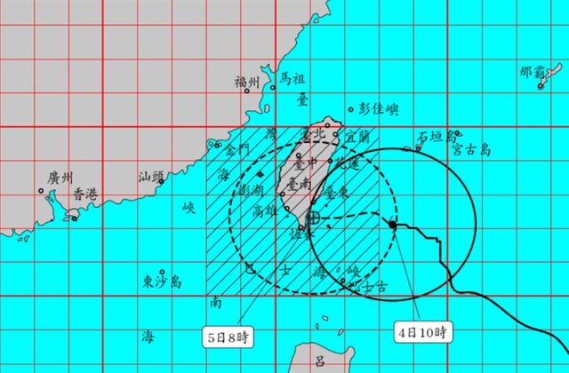 根據中央氣象署最新資訊,目前中度颱風「小犬」,4日10