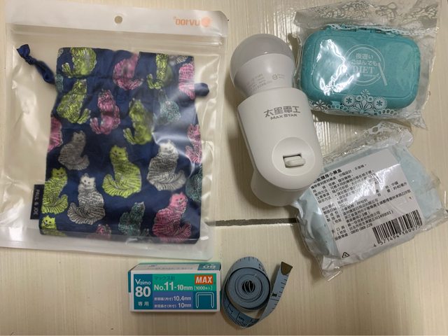 (3)束口袋(二手)/隨身藥盒(全新)/小燈座(二手,僅用2-3次)/訂書針(全新,