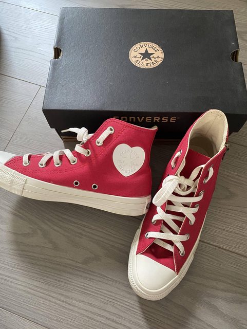 1. Converse日本限定愛心標紅色高筒帆布鞋