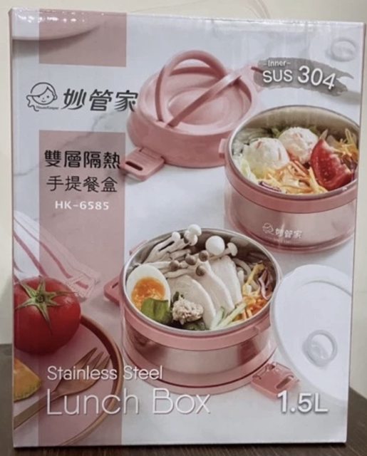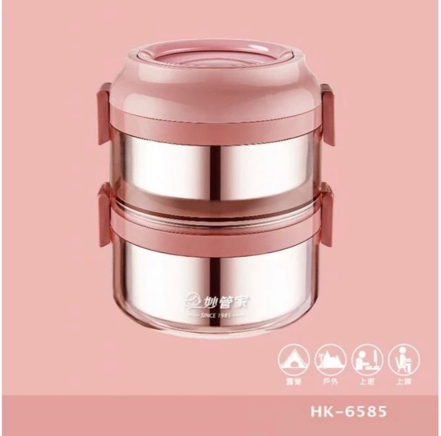 1. 全新 妙管家 雙層隔熱手提餐盒 1.5L 玫瑰粉 HK-6585 1500ML SUS304不鏽鋼 SGS檢