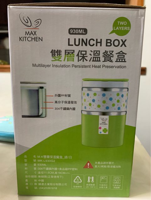 2. 全新 MAXKITCHEN LUNCH BOX 雙層保溫餐盒 #304不銹鋼內膽《MK-L930G2》