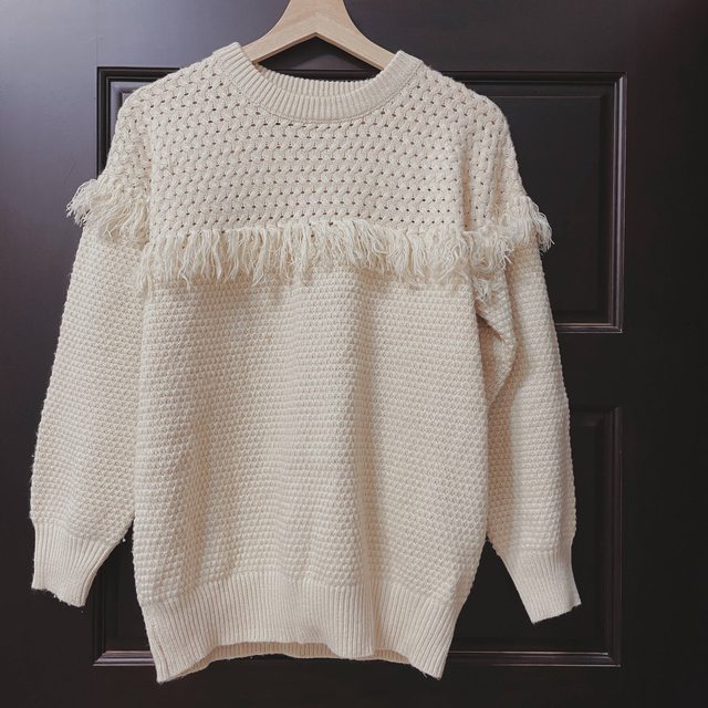 1. Lovfee奶白色流蘇毛衣 160元