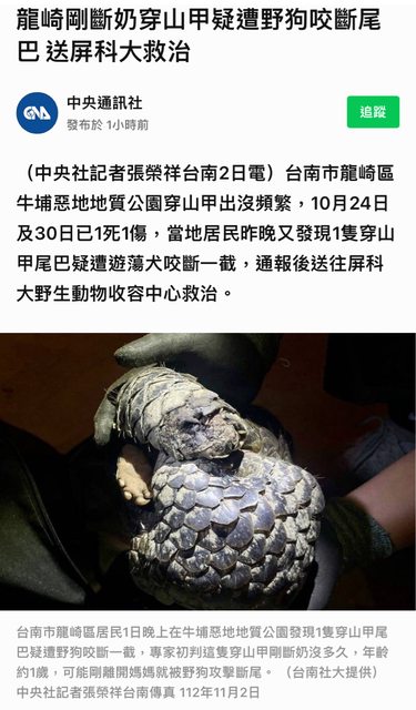 標題[情報] 龍崎剛斷奶穿山甲疑遭野狗咬斷尾巴QQ