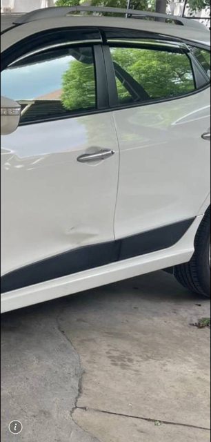 左前門邊,路邊停車後,被A到小傷痕,報案單如照片
