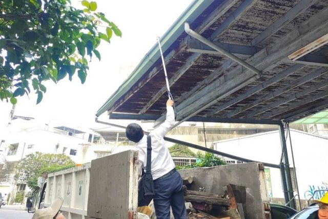 圖為防疫人員持續在社區進行孳清與稽查工作。
