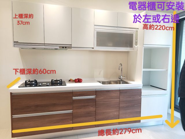 尺寸: 長約279CM、下櫃深60CM 上櫃深約37CM