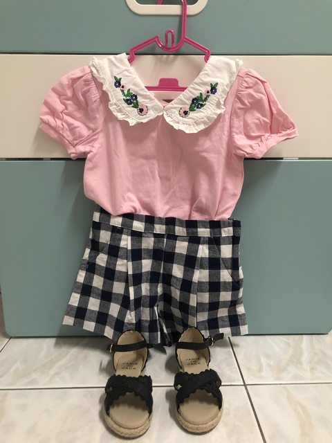 Janie and Jack 粉色格紋成套衣褲鞋 尺寸2T 下水洗過,沒穿過 售1400 (買之前就先搭配好,可單買,一件600)