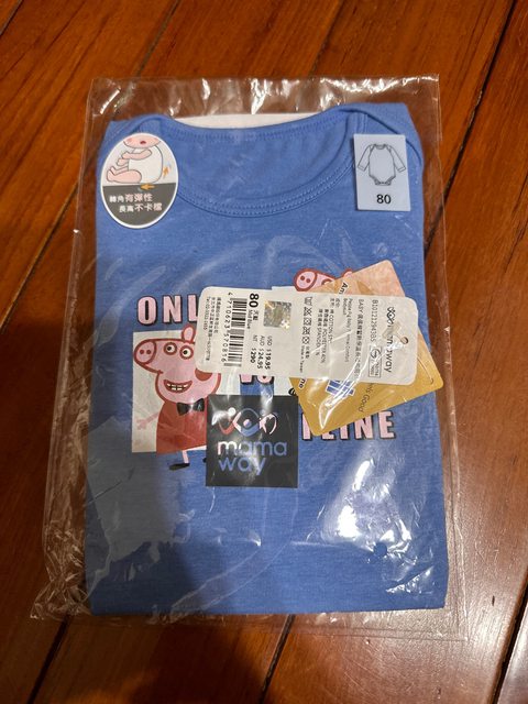 商品名稱3:Mamaway 佩佩豬蓄熱保溫長袖包屁衣-睡覺佩佩豬(長袖80)