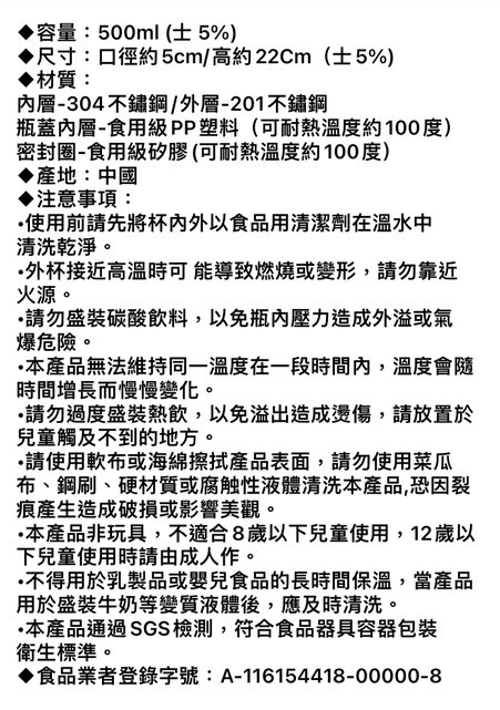 304 不鏽鋼、500ml