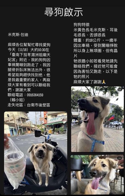 標題[失蹤] 後壁區下茄苳 長毛黃色米克斯走失