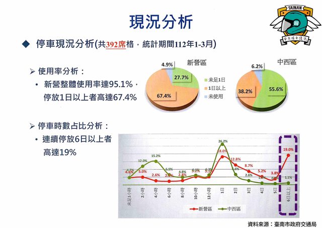 台南市停車場自治條例停車格不能停超過三天,新營區還沒停車格收費前,停超過6天沒動