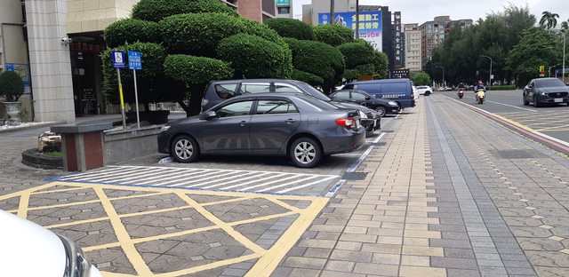 這些停車位的位置除了本文重點-身障車位沒有單位能願意管理外,還有是在人行到內側,