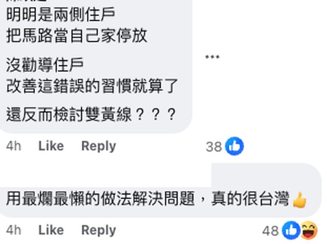 → jackloutter: 搞到的我想一定是去反應看是否撤銷雙黃線。 06/28 03:03