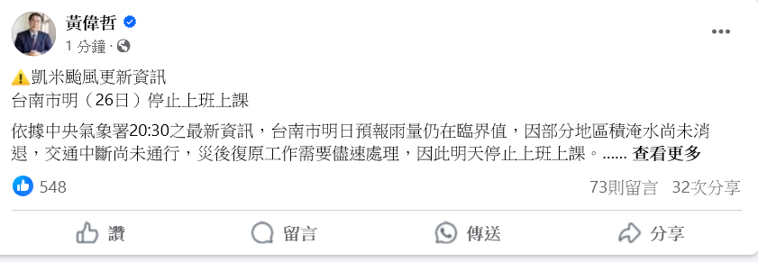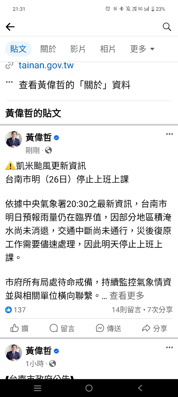 推 csjh960023: 台南上面、台南下面都放颱風假 07/25 21:30