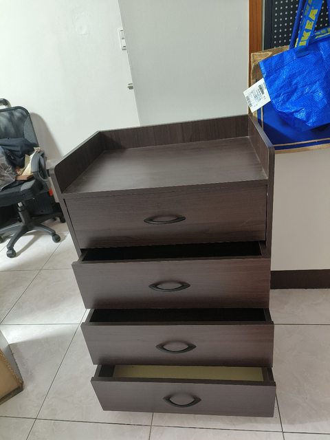 抽屜櫃寬62深45高88抽屜有點卡不過還能用 抽屜底部比較薄不能放太重的東西