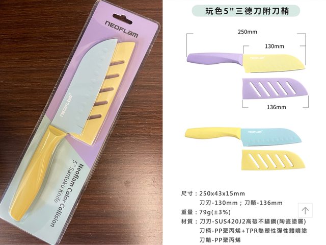 1. 全新Neoflam馬卡龍玩色"三德刀(附刀鞘)