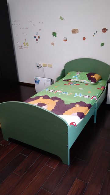 能依據小朋友的身高調整床的長度,品相良好、穩固,附上床底板條,請自行至IKEA購買