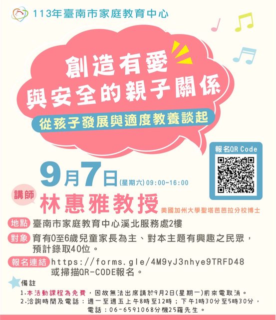 地點:臺南市家庭教育中心溪北服務處二樓研習教室。