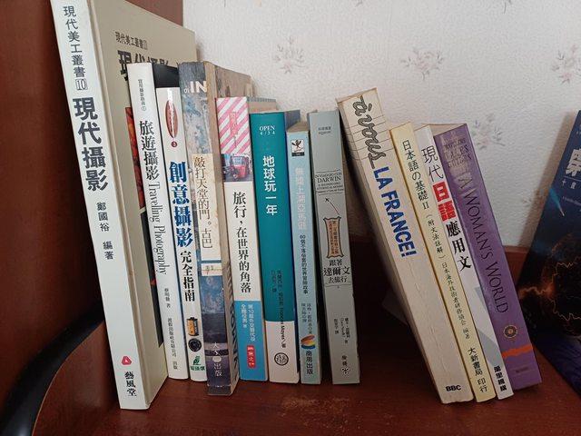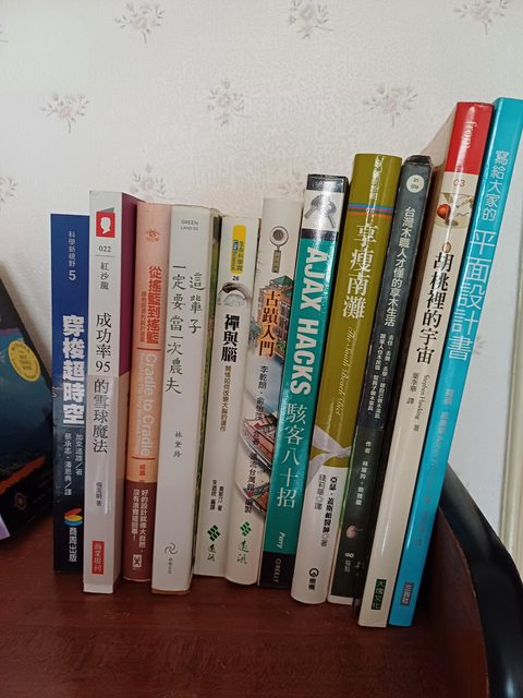 照片中的二手書,任選三本交換一瓶愛之味分解茶