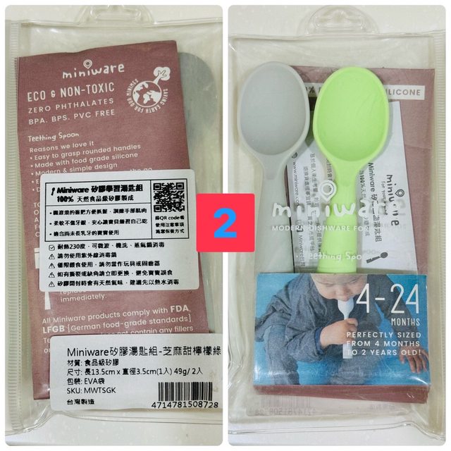 2、商品名稱:miniware 矽膠學習湯匙組(芝麻甜檸檬綠),全新一組120元。