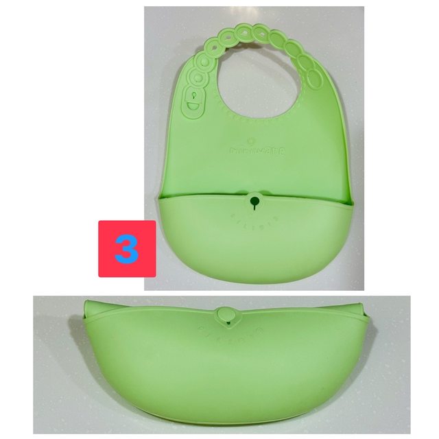 3、商品名稱:miniware 袋著走 立體矽膠圍兜(薄荷綠),二手無明顯髒污,120元。