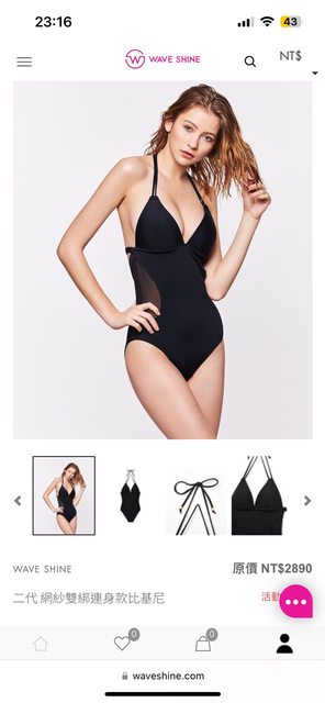 1. Wave shine 二代網紗雙綁連身款比基xs $1200