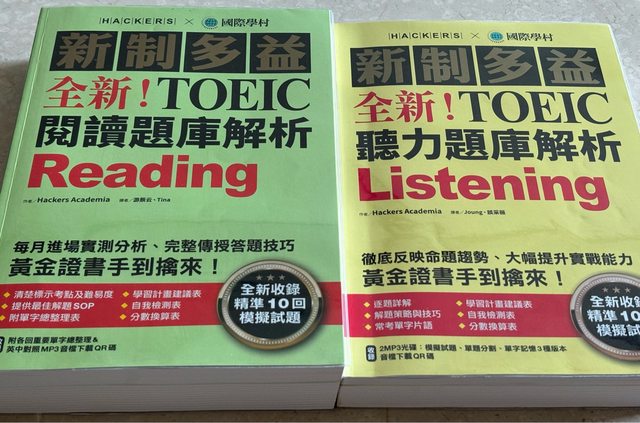 交易物品/金額/說明:國際學村新制多益聽力、閱讀題庫解析各1,欲售1,000元,